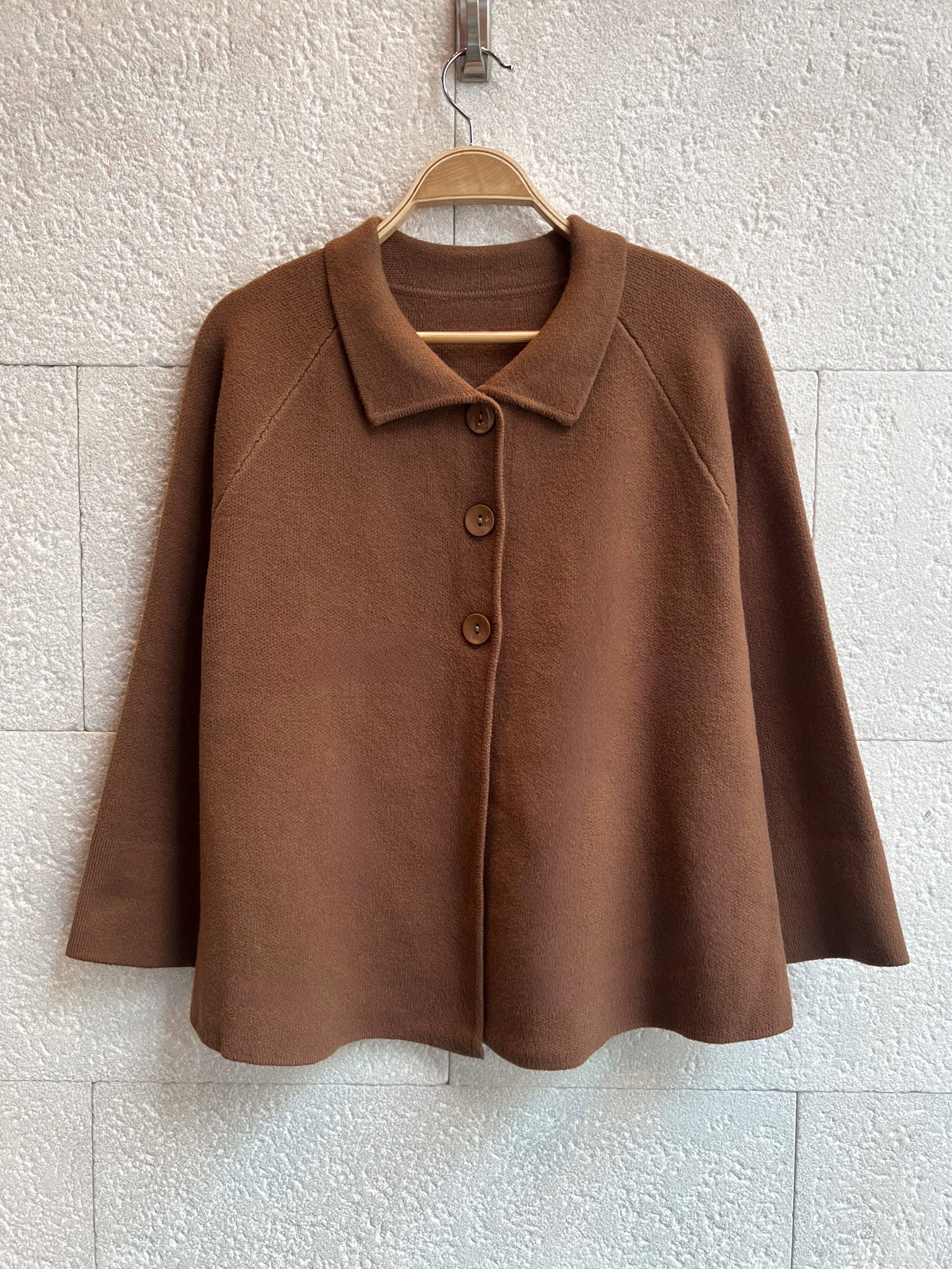 Chaqueta de punto con forma evasé, con cuello y abotonada. Es súper suave y abrigadita, perfecta para todos tus looks!