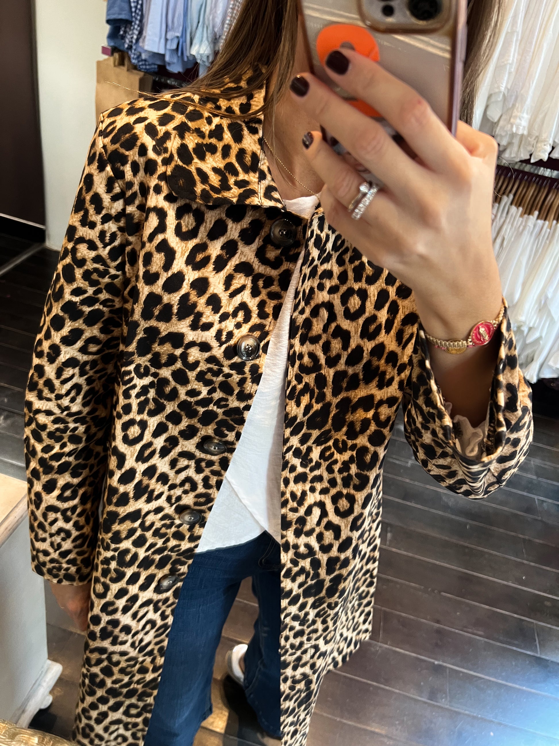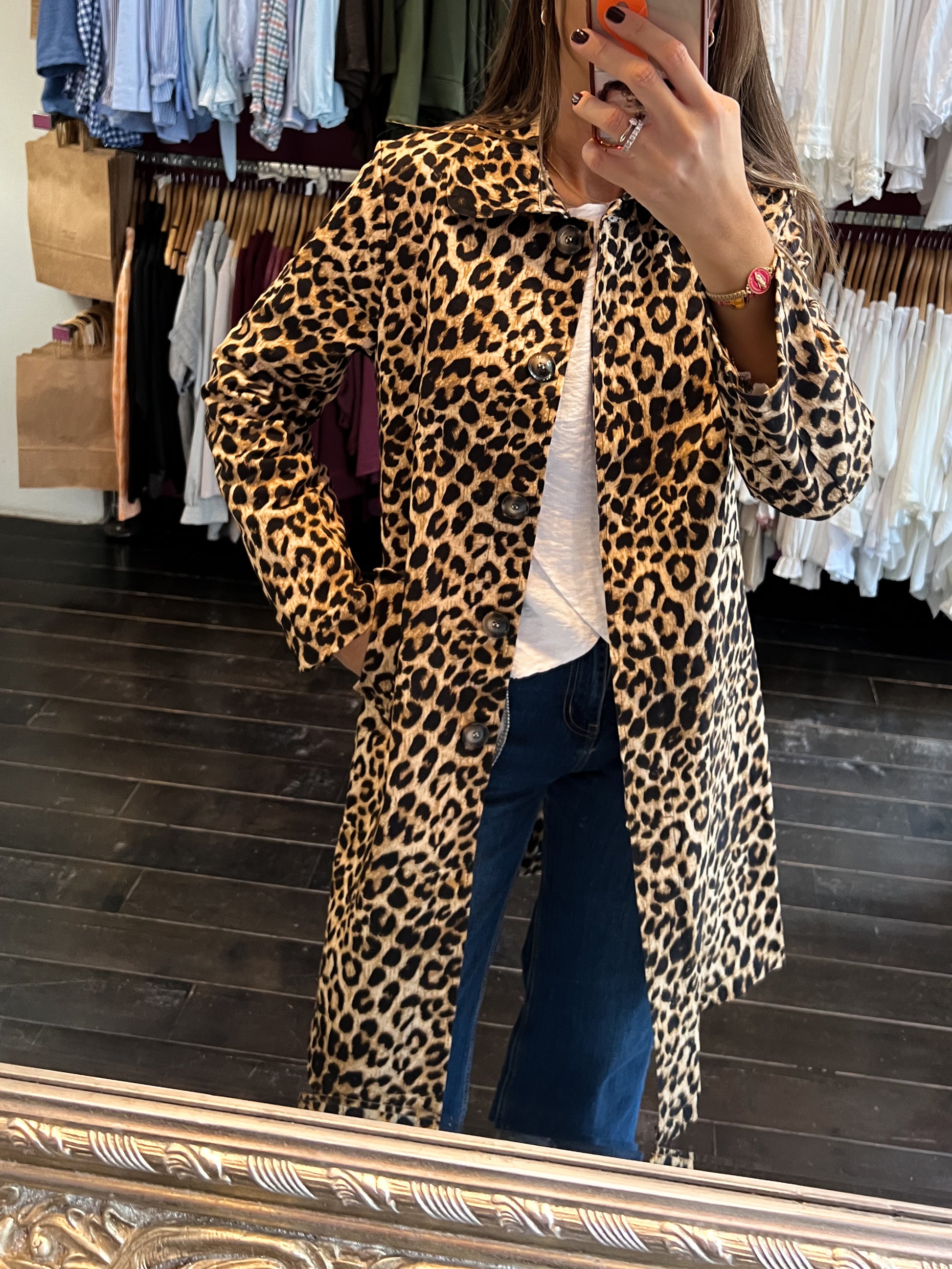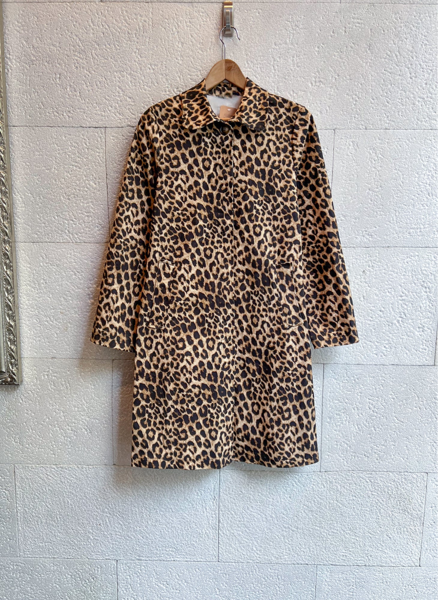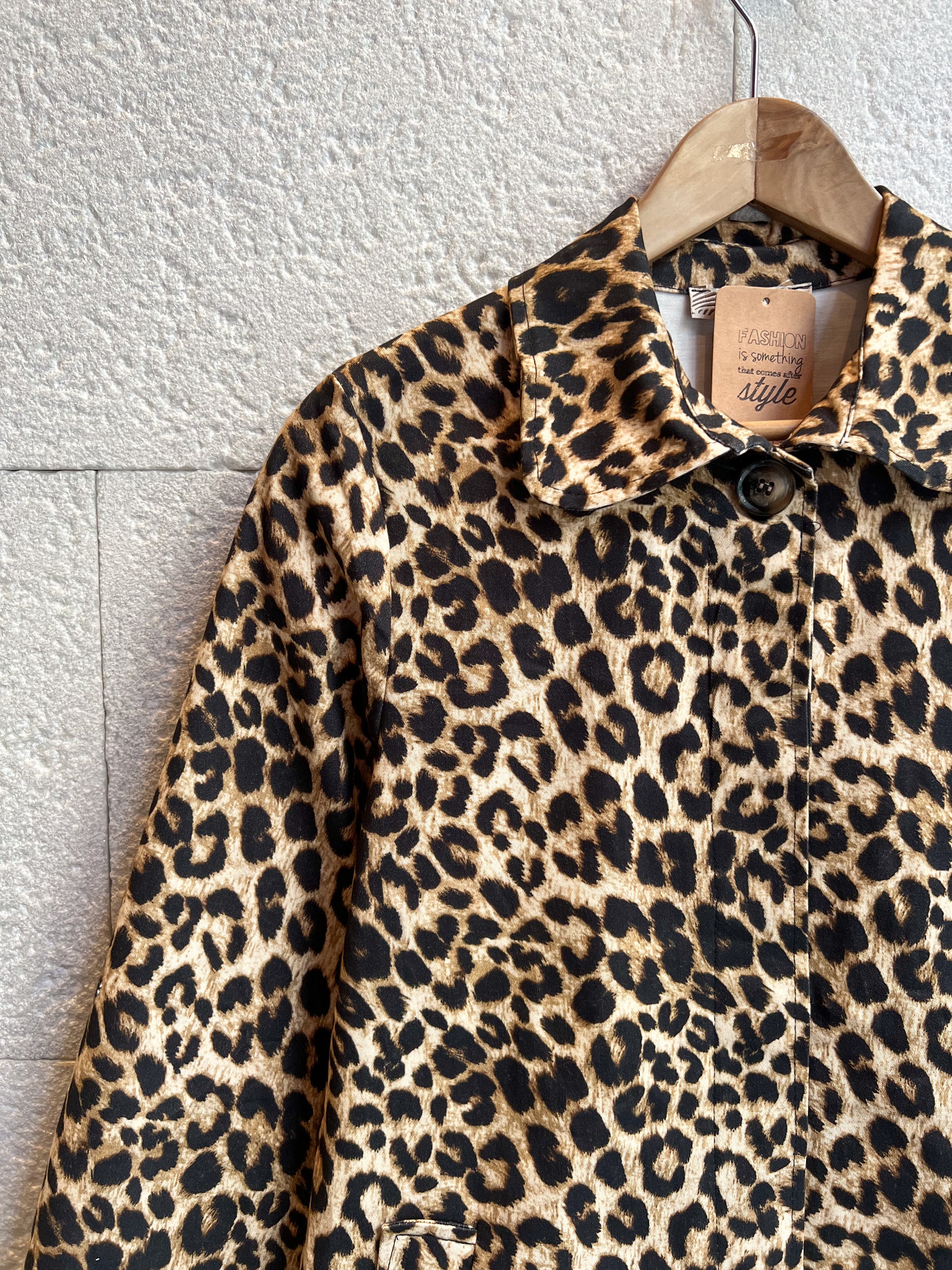 Trench de entretiempo con estampado de leopardo. Cierre con botones ocultos, bolsillos laterales.