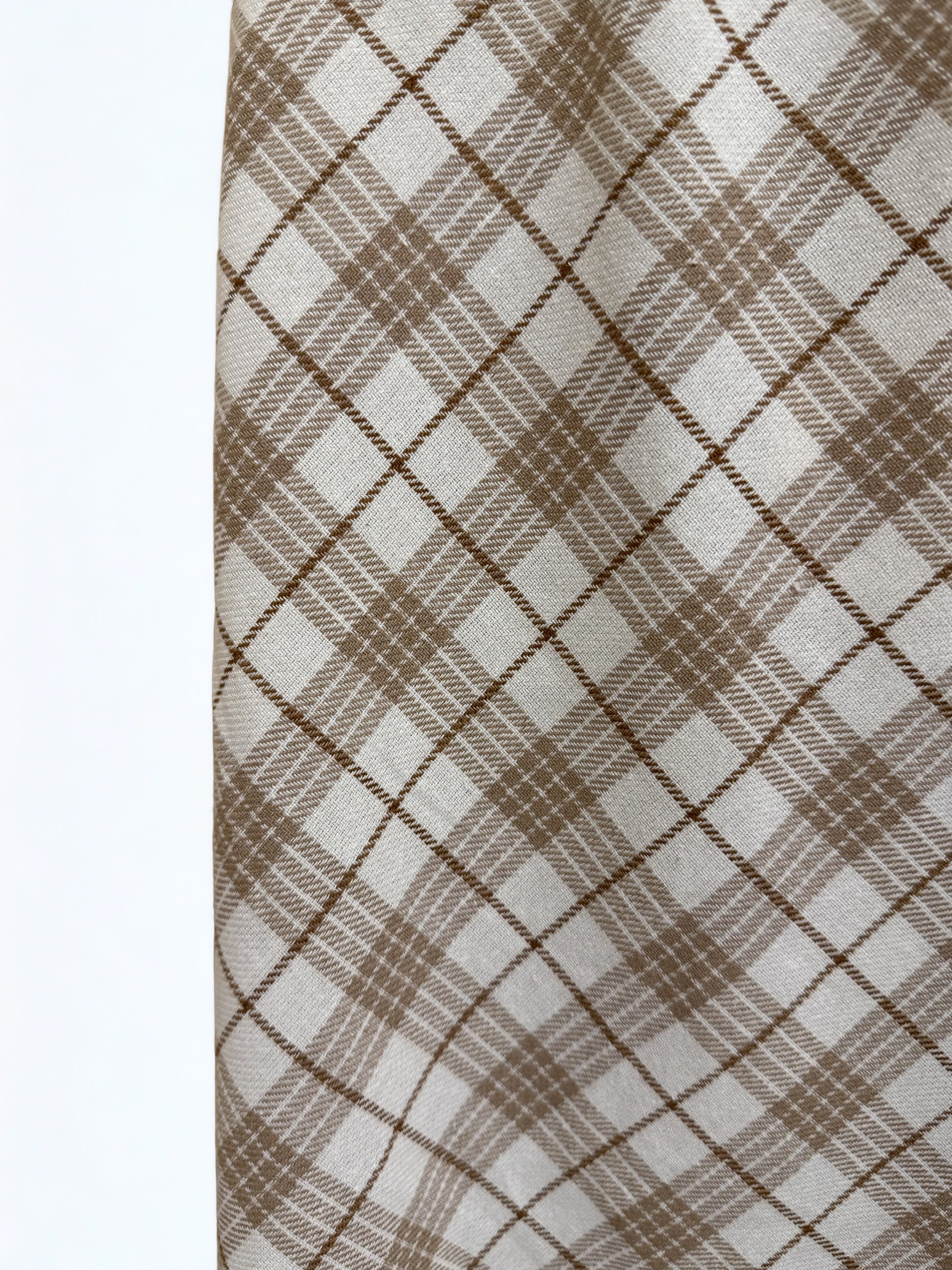 Falda con estampado de cuadros tartán en tonos crudo y beige, forma evasé. Goma en la cintura.
