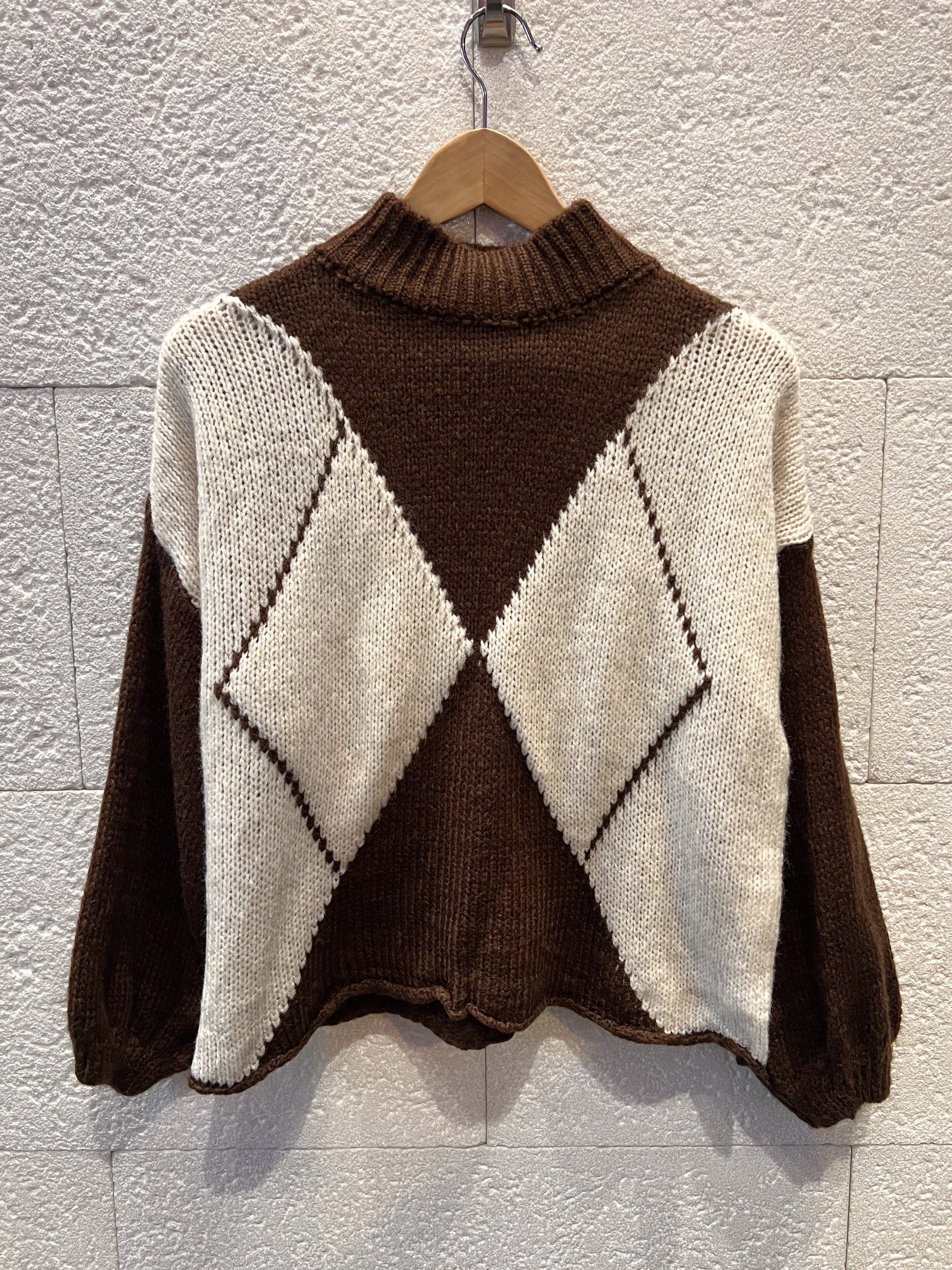 Jersey de rombos cuello Perkins con mangas 3/4. Súper suave (no pica) y calentito!