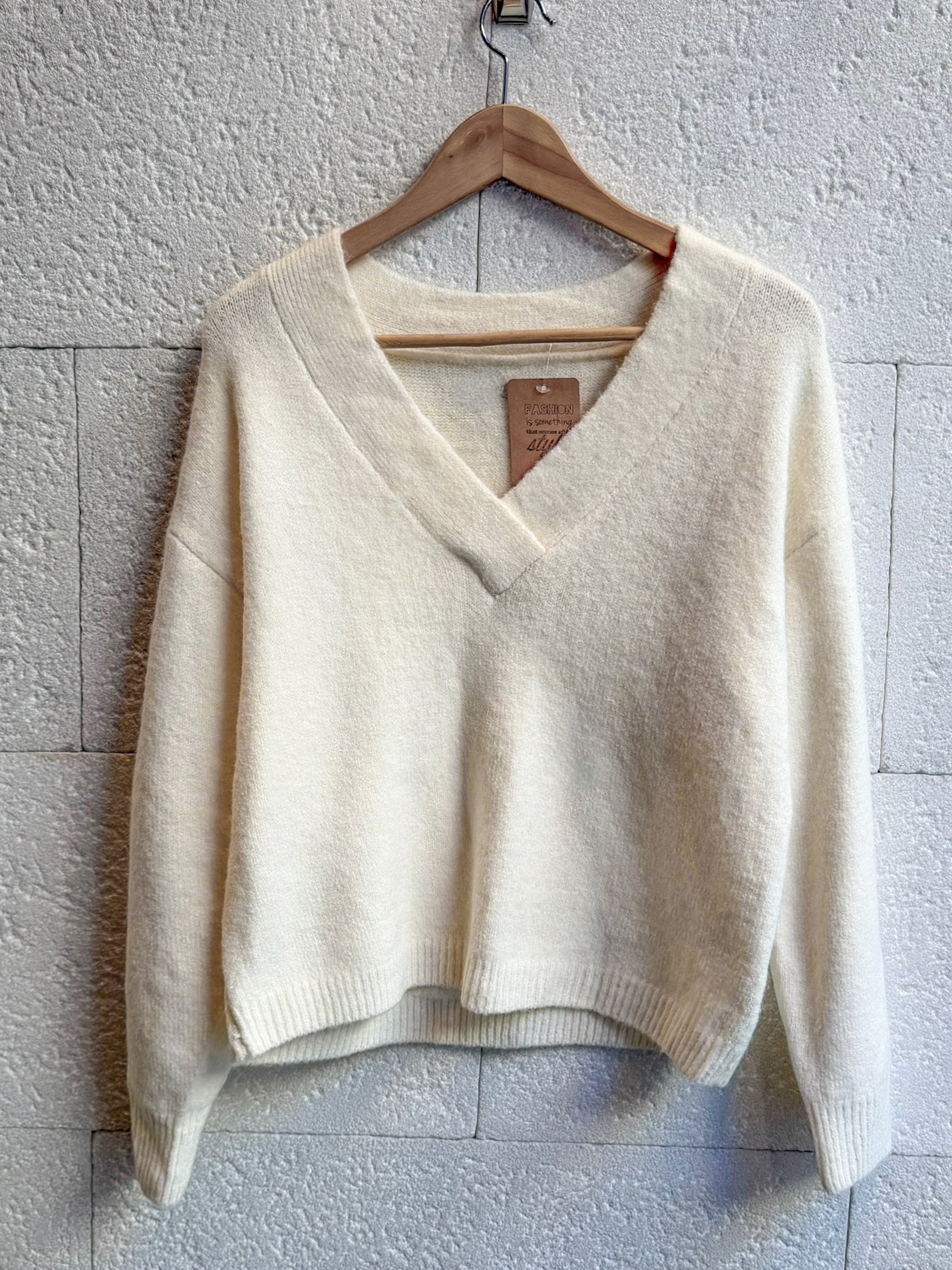 Jeres en color crudo, escote V ¡Súper suave y abrigadito! Ideal si lo combinas encima de tu blusa/camisa favorita.