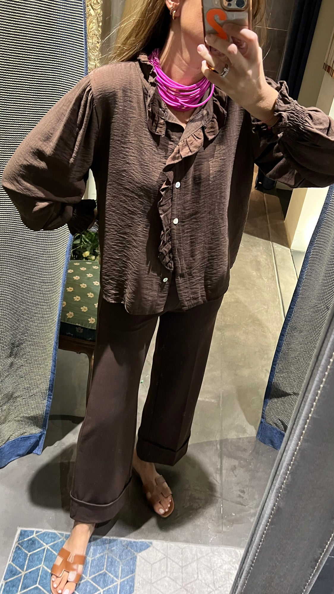 Pantalón recto con goma en la cintura. Tejido elástico, súper cómodo y favorecedor!