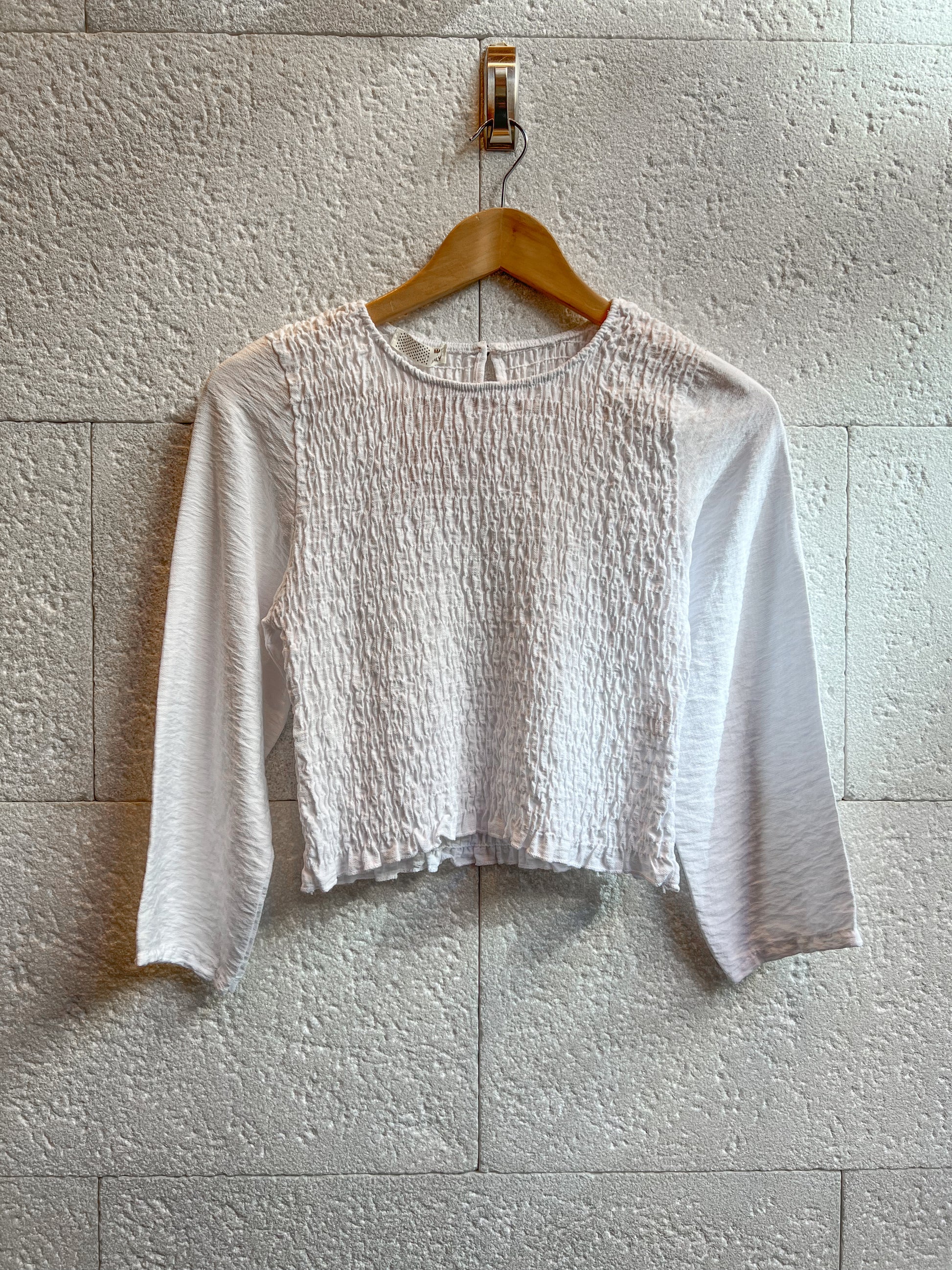 Crop top entallado, totalmente fruncido con nido de abeja.