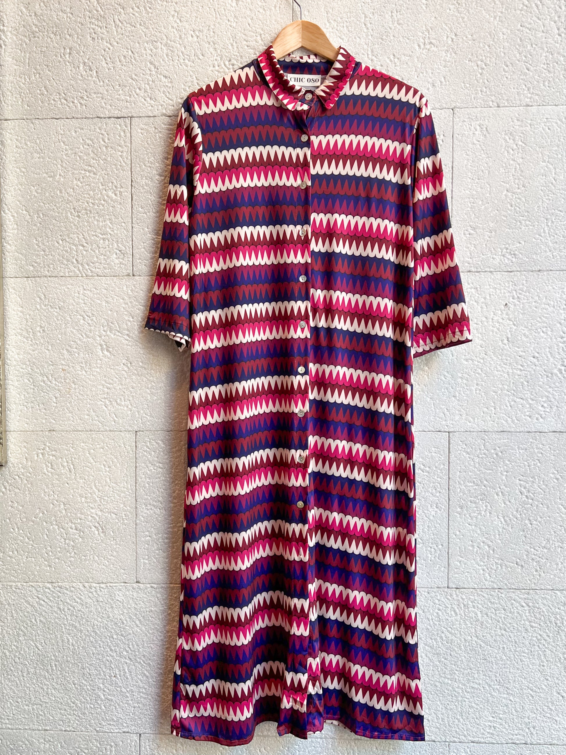 Vestido camisero de punto modal. Totalmente abotonado, con lo que es ideal también a modo de sobrecamisa larga. Tejido súper fresco con mucho movimiento, no se arruga.